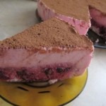 В форму чуть большего размера укладываем пленку. Остывшую основу переворачиваем на пленку поджаренной стороной вниз, а ягодами – вверх. При помощи пленки транспортируем основу в форму и заливаем йогуртовой смесью. Верх торт закрываем пленкой и отправляем в холодильник до полного застывания на целую ночь. Торт вынимаем, освобождаем от пленки и украшаем по желанию. Можно посыпать просто какао порошком через сито, а можно сахарной пудрой.