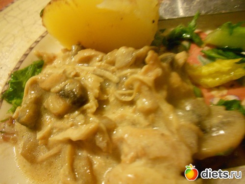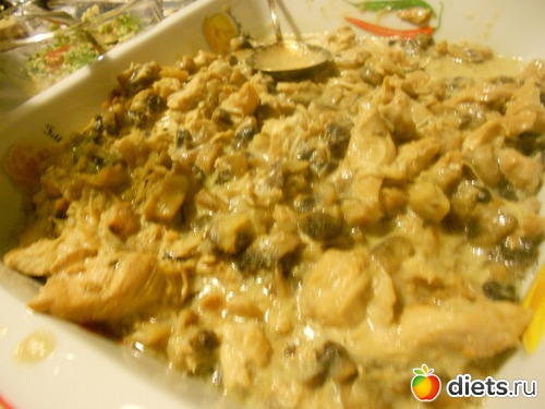 И еще одна горячая закуска - грибы с индейкой в сметане с картошкой: