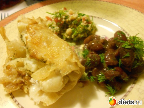 А еще сильно заманила меня рыбка в лаваше, там может окушок или треска?