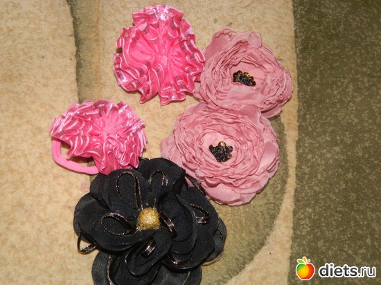 - Резиночки для волос с цветами ручной работы разнообразнейших цветов и форм, брошь: