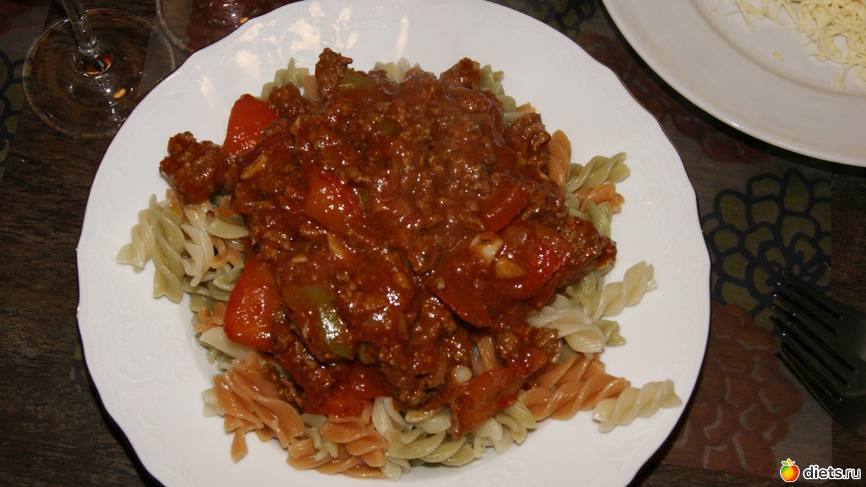 Моя Балоньеза почти классическая, только я добавляю свежих овощей побольше, с небольшой тепловой обработкой, чтобы они похрустывали