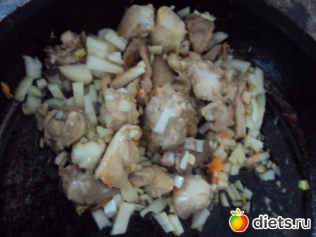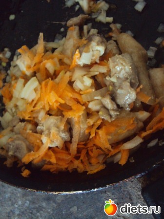 кладем его на сковороду и тушим на медленном огне мин.10. Добавляем к нему мелко нарезанный зубчик чеснока и тушим 2 минуты, постоянно помешивая