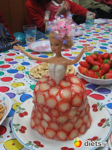 первый раз я даже не рискнула взяться за мастику, украсила юбку ягодами и залила аккуратно желе-глазурью для тортов.