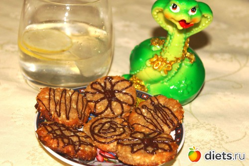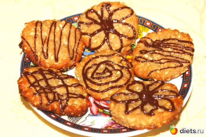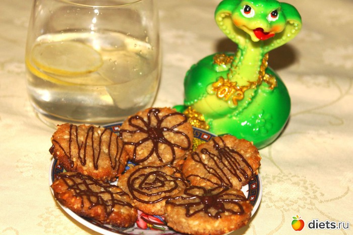 выпекаем до чуть коричневатого цвета, украшаем растопленным шоколадом.