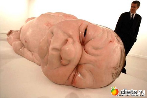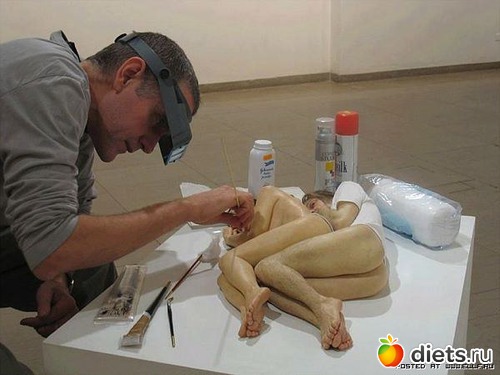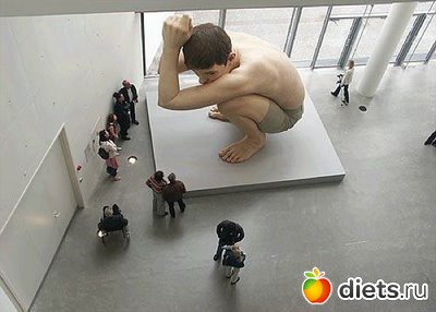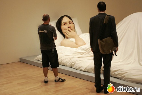 Работы австралийского скульптора Рона Мьюека поражают воображение - объекты, выполненные в гиперреалистичной манере, но не соответствующие реальным размерам, вызывают особенное ощущение будто две реальности, существующие по разным законам, вдруг пересеклись в одной точке.