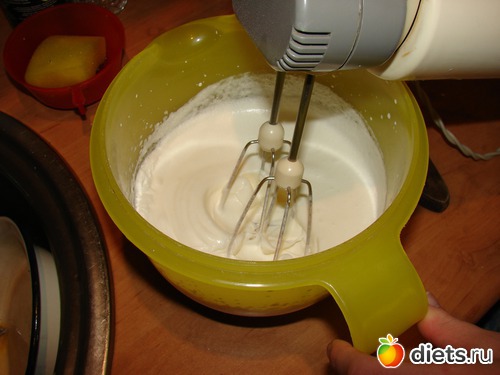 Яйца взбить с сахаром (взбивать в течение 5-7 минут).