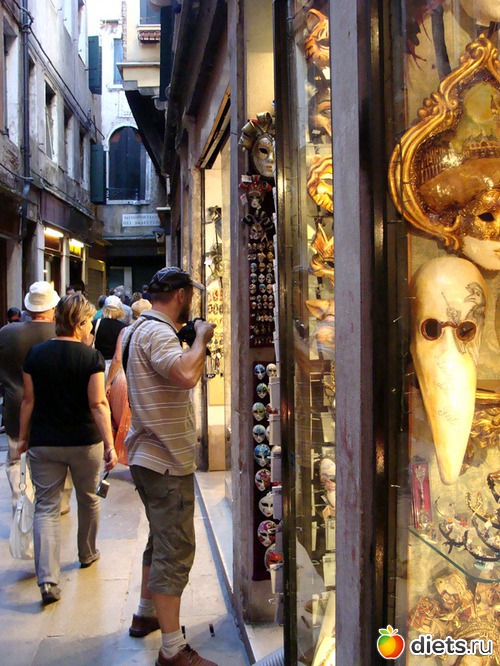 Сразу же после того, как туристы причаливают к берегу у площади Сан-Марко, их встречают многочисленные магазинчики, лавочки, кафешки...