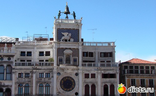 Под венчающим элементом башни установлен герб Венеции - крылатый лев.