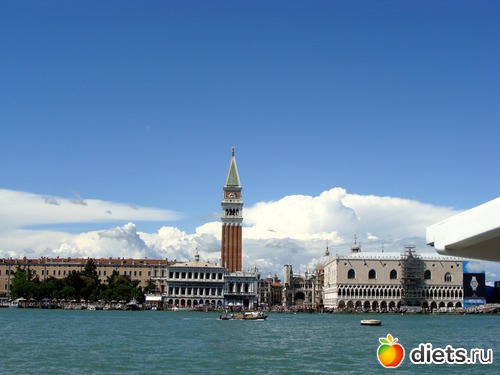 проплываем мимо главной площади Венеции, виден дворец Дожей (правителей) и Кампанила (колокольня)