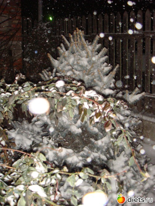 На улице так красиво, все белое, а сейчас, при свете уличных фонарей, кажется, что находишься в сказке