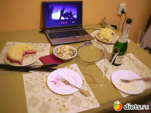 А на то есть несколько причин: Мы здесь приезжие, друзей здесь очень мало и те разъехались. В прошлом году отмечали у моей очень хорошей знакомой, почти подруги. Но я адски устала от сессии, а милый - от работы, а нужно было еще поддерживать общение с малознакомыми людьми (это муж подруги, ее сестра, муж сестры и ее подруга) - вышло не очень, мы еще больше устали. И потом я уже много лет отмечаю в больших компаниях, поднадоело. Традиции традициями, но хочется перемен. А писала я об этом или нет, не помню. Главное, что весело