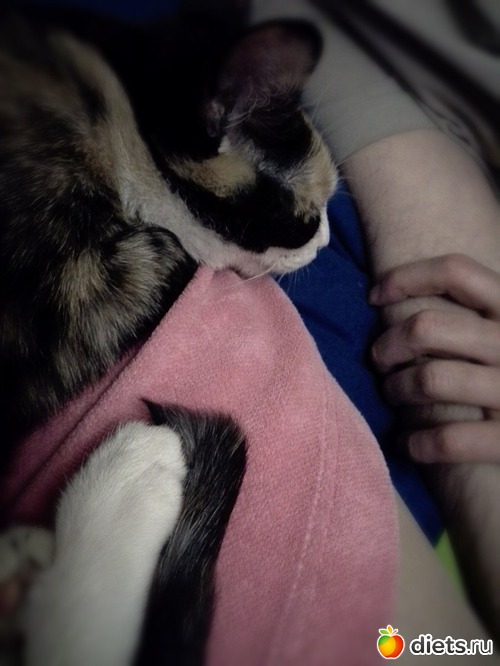 Еле мы дождались, когда пройдет кризис болезни, когда приедет подруга и заберет кошку. Кошка, надо отметить, оказалась не подарочком: днём она спала и набиралась сил, а ночью у неё начинались катания по линолеуму, прыганья на шкафы, сбрасывание различных тяжелых предметов на пол, карабканье по шторам... и прочие традиционные, но слишком уж активные развлечения для кошек.