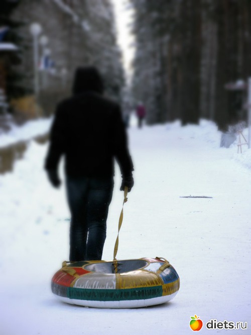 "Ватрушка", которую тащит мой милый, а через пару мгновений - карета, в которой я буду ехать на горку
