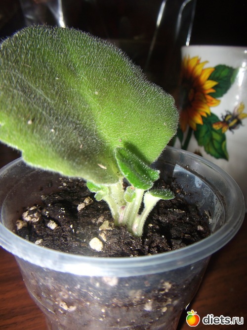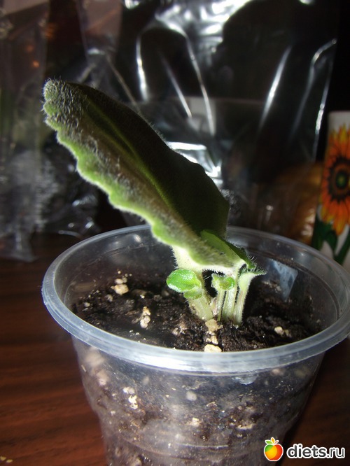 Поясняю. Те, что долго стоят листы и не дают деток, если при этом листы крупные, их можно порвать - оставить черенок в земле, а верхушку оторвать и укоренить. Так и черенок активизируется. И, оказывается, верхушечки тоже чудесно укореняются. А если лист очень большой, верхушку можно порвать еще на две части. ))И в смесь земельную или в торфяную таблетку и под пакет.