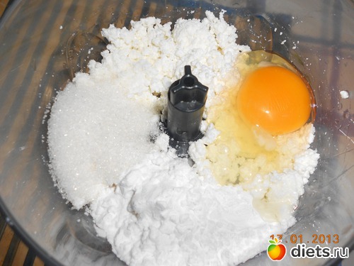 К 300 граммам творога добавляем одну столовую ложку манной крупы, одно яйцо и по желанию сахар, ваниль, изюм.