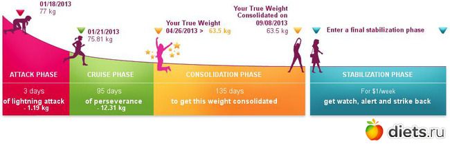 Так вот, Дюкан рекомендует достичь веса 64кг и мне эта цифра как-то больше нравится