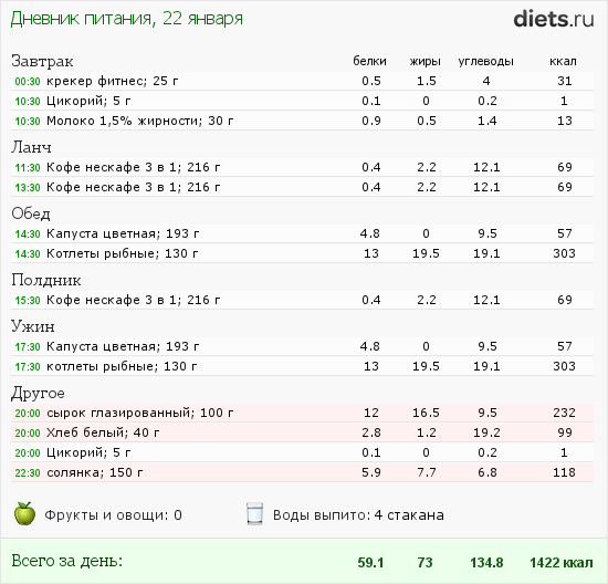 мой вчерашний рацион желает лучшего