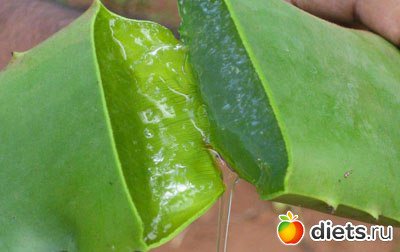 После очищения протирайте кожу кусочком листа алоэ (той стороной, с которой предварительно надо снять кожицу). Для чувствительной кожи хорошо подойдет домашний тоник из сока алоэ и розовой цветочной воды (гидролата), смешанных в равных количествах.