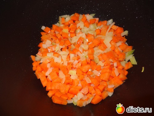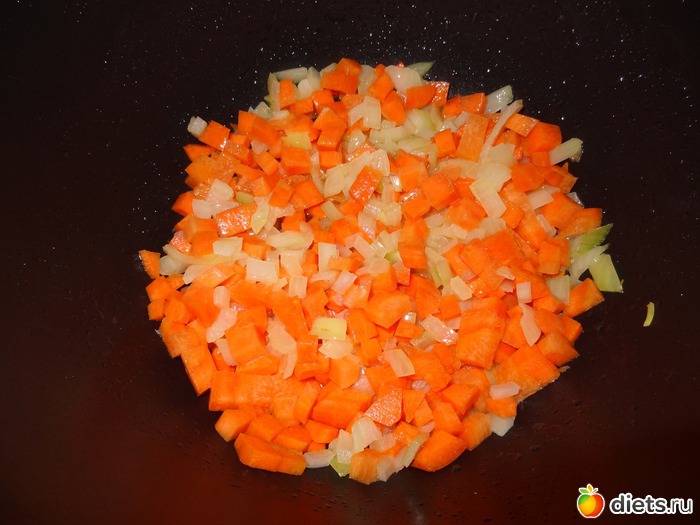 Лук и морковку кубиками припустила на сливочном масле+капля растительного
