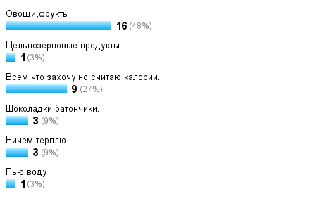 перекусываю по желанию - овощи, фрукты, орехи, сырники (диетические делаю, запекаю в духовке), овсяное печенье (домашнее, опять же диетический вариант), бутеры с отварной курешкой и овощами, чай, минералка.
