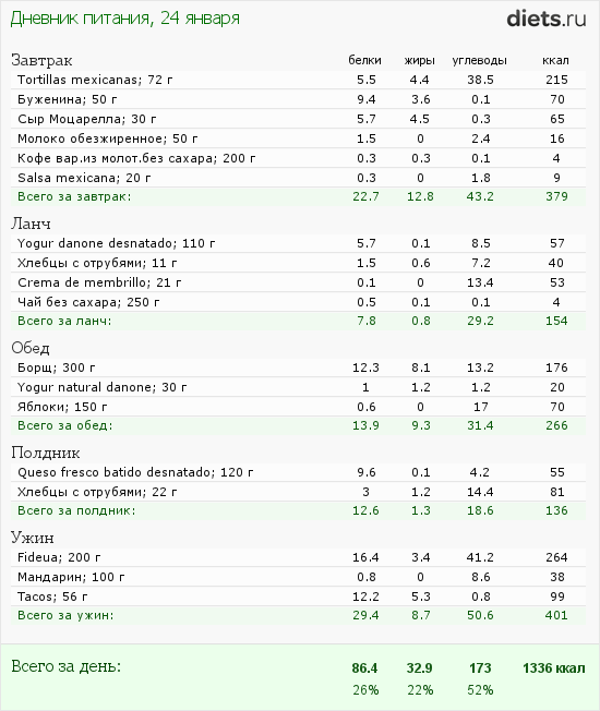 В полдень перекусила нежирным йогуртом и тостом с повидлом из айвы (crema de membrillo), на обед борщ, на полдник сыр обезжиренный, а вот на ужин себя побалую - сделаю fideua, это что-то типа паэльи, но только не с рисом, а с лапшой, плюс несколько видов морепродуктов. Кстати, с морепродуктами впервые, по-моему, набирается белков 26% от всей калорийности, так что надо к этим морским гадам повнимательнее присмотреться