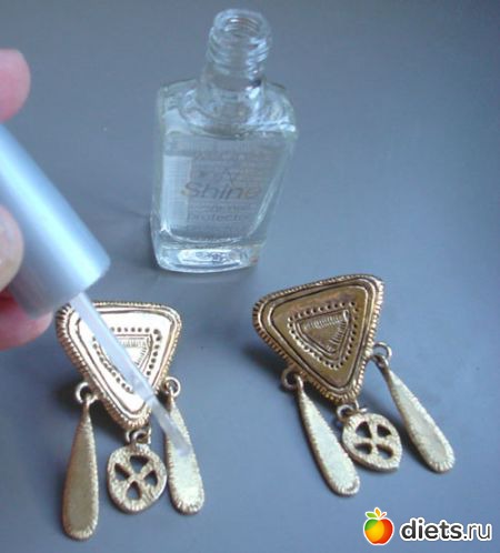 обновить дешевую бижутерию. Тогда она сохранит свой блеск и не окрасит кожу в зеленый цвет при соприкосновении. Драгоценные металлы лаком лучше не покрывать, прием только для дешевых украшений.