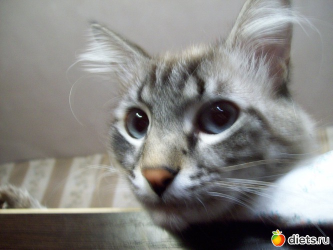 А вот и мой красавчик... Сказать, что я его обожаю - значит, ничего не сказать. У нас всегда были кошки, но как-то не складывалось с ними. А тут мама после операции, на инвалидности, сидела дома. И жаловалась, что скучно. И тут я возьми, ляпнни, что у знакомой кошка окотилась, так мама прямо загорелась и вскоре притащила котенка. Я отговаривала, но все же. Маму он очень любил, называл ее "мамой", да так четко и всегда по делу. А у нас с ним отношения наладились, когда он чуть подрос. Как он горевал, когда мамы не стало! Она умерла ночью, и до утра он просидел возле нее, смотрел, не отрываясь. Не ел неделю потом.