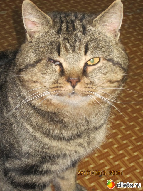 у моих родителей лет 12 назад тоже был котик одноглазый - тоже соседский придурошный подросток выбил глаз из воздушки, и не одному ему, много таких котов в округе было.