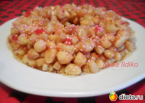 Кстати, нашла ещё совет в итальянском блоге о том, что любители пышностей могут добавить в тесто немного соды, разрыхлителя или аммиака, тогда тесто должно постоять при комнатной температуре около 2-х часов. При жарке струффоли будьте внимательны, не пережарьте - иначе в итоге они получатся твёрдыми. А должны быть хрустящие снаружи и мягкие внутри. И ещё итальянские домашние кулинары советуют добавить в мёд апельсиновый сок, коньяк, корицу..в общем, модифицировали