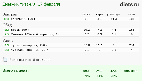 Всем привет(((( сегодня какойто день не очень у меня. встала общее недомогание. ( видимо кд виноваты) плюс голос сипит. может вчера перенапрягла когда с дочкой играли? поехали на вокал там все хорошо в марте концерт маленький будет. споем)))) вот.. съездили по магазинам тоже удачно даже пробок не было в городе.. зато на выходе из машины чуть ноготь не сорвала полностью(((((( так болит и немного кровоточил. щас вроде прошел но все равно держу его в состоянии покоя. есть вообще не охота... кое как запихиваю. может потому что утром блины ела? они давнольно каллорийны но воскреные блины это святое итак пару разх пропускала их.. но по каллорийности все равно выходит как обычно