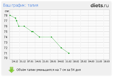 теперь продолжаем худеть дальше до 60 см в талии и вес 55 кг ждите я коро буду с вами))))