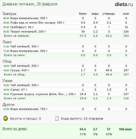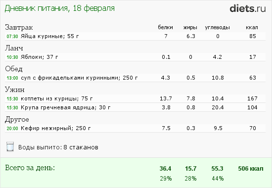 ооо умничка и дневник спорта завела. а я вот решила по утрам кашу заваренную кипятком есть. на обед суп а на ужин кусочек мяска. ну фрукт какой нибудь в перекус