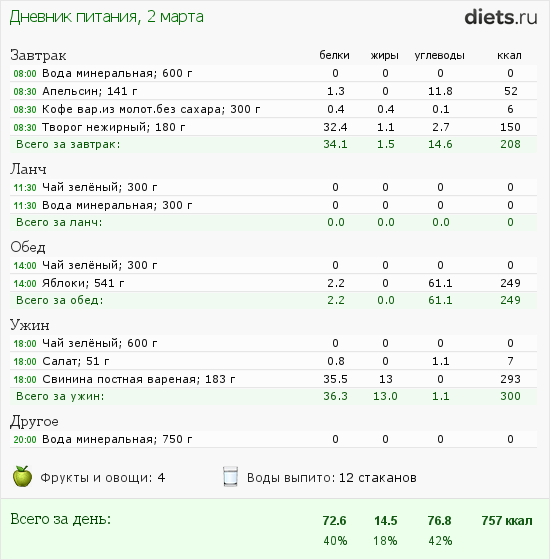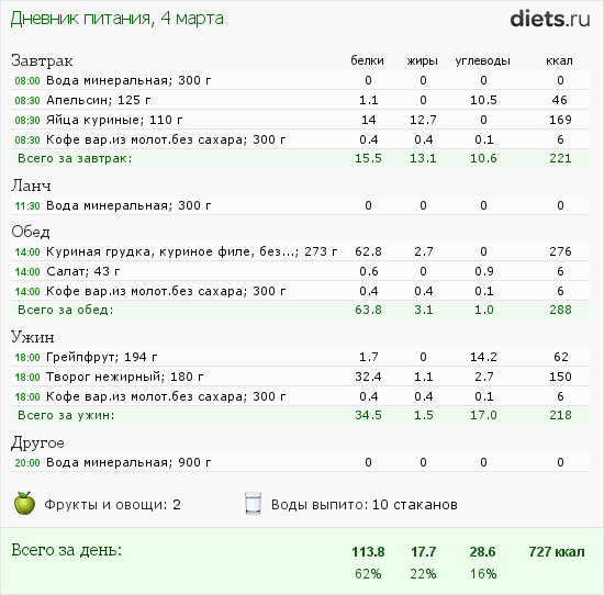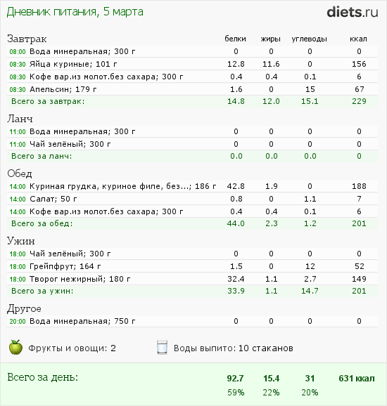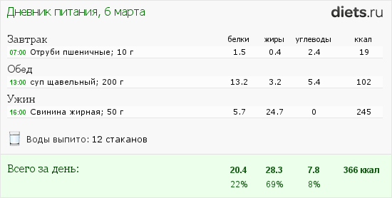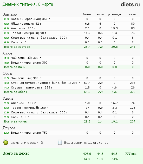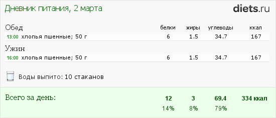 вот как то так. из активности 10 подъемов на 5 этаж!!!! ( соседке комп настраивала и инет заколебалась бегать по 100 раз туда сюда но что поделать)))) вот плюс обруч 20 минут) 30 приседаний да по 50 наклонов вперед и по бокам. вот как то так. завтра планирую разгруз сджелать на пшенных хлопьях. даже может дня 2 так поживу. посмотрю как в воскресенье проснусь. вот. жду не дождусь 8 марта. завтра промежуточные фотки закину за неделю до)))) живот подтянулся конечно ещё не так как хочу но уже не свисает сильно.