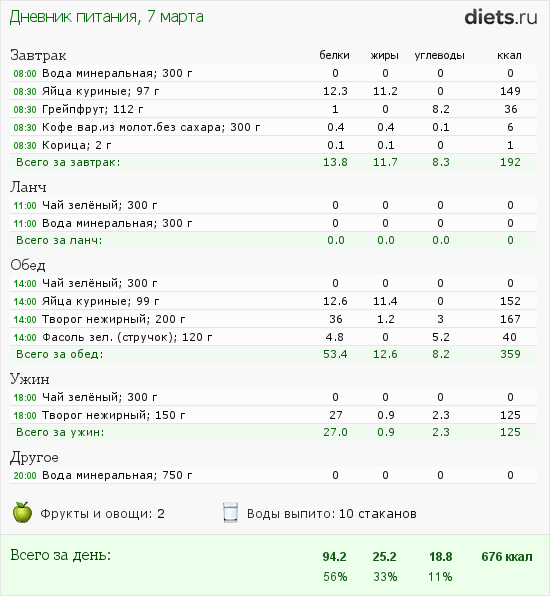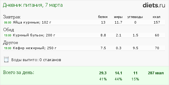 Мой рацион: ничего понять не могу - но ничего не могу есть больше, так сильно яйца и мясо насыщают
