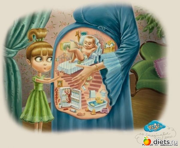 разговаривает он значит с дочей, поглаживая мой живот и говорит: "Вот, доченькая, когда ты была маленькая, папа тебя туда (в живот) посадил, а потом ты там жила и росла"