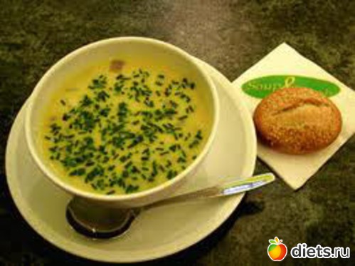 Как-то в одном выпуске был обычный луковый, не пюре, но зато вообще на воде, причем она советовала именно на воде, чтоб не перебивать основной вкус, но зато с гренкой и сыром