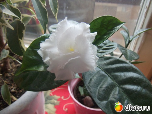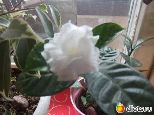 Я ее купила полтора года назад в виде саженца в два листика за 100 рублей. Росла медленно. Поменяла место - осыпались бутоны. Забила уже на нее. Капризные они. А она в мой отъезд (10 дней), стоя в тазике с водой возьми и дай новые бутоны. Их всего-то три. Но первый распустившийся цветочек - просто ах! А пахнет! но это не такая, как продаются в магазинах. В общем - смотрите сами.))