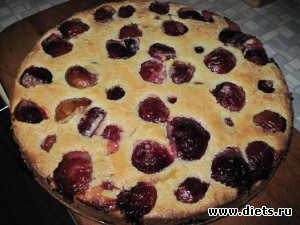 6. Выпекать в духовке 180-200 градусов 45 минут (это по рецепту так было, у меня реально получилось 1,5 часа, вероятно температуру надо ставить изначально выше, так как сливы дают сок и тесто не пропекается за 45 минут).