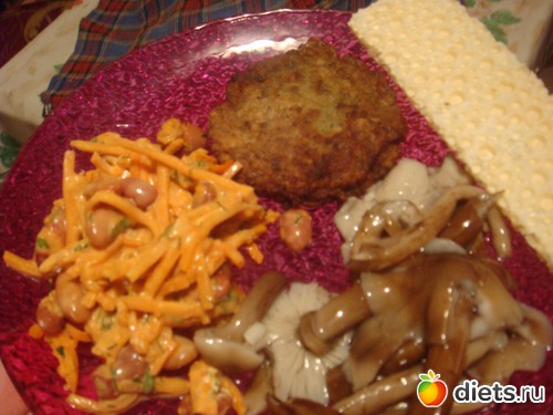 Приехали домой, пообедала котлеткой из печени, грибочками папиной закатки и салатиком