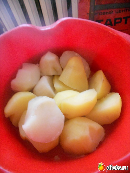 2. Параллельно отвариваем картошку практически до готовности. Сливаем.