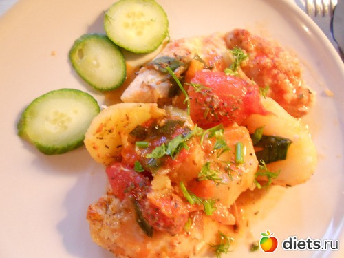 и цыпленок с картофелем и помидором а-ля Джейми Оливер (рецепт тут: