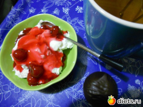 Ужин - творожок домашний с вишневым киселем, зефиринка к чаю: