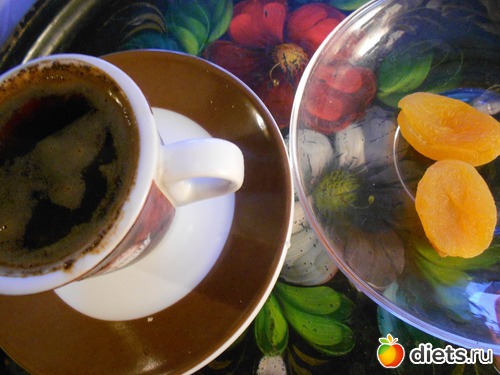 полдник - кофеек обезвреженный (декаф) с курагой (для восполнения калия - я же травки пью):