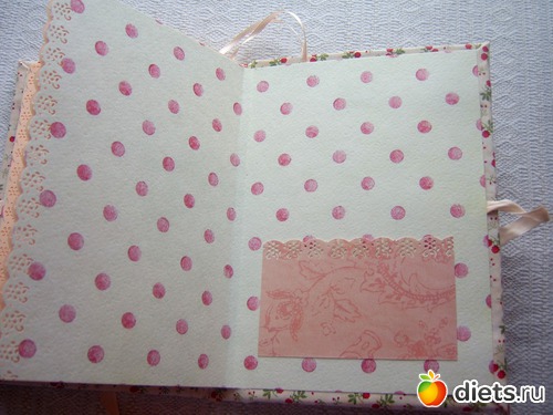 Кулинарный блокнот "Мамин пирог"! Однажды я уже делала такой блокнотик, только он был маленьким, этот же большой - форматом А5 - много войдет рецептов! А еще там разноцветные странички - нежно персикового цвета и бежевого! 80 листов (160 страниц) каждый листочек по краю обработан фигурным дыроколом, что создает такой красивый и нежный эффект кружева. Каждый листочек так же проштампован. Есть закладка и есть кармашек для небольших вырезок и заметок! Блокнотик прекрасно подойдет в качестве подарка как для бабушки, мамы, подруги, так и для дочки, которая будет записывать полюбившиеся мамины рецепты и потом пытаться их повторить! В блокноте нет разделов, потому он вполне подойдет в качестве дневника питания!