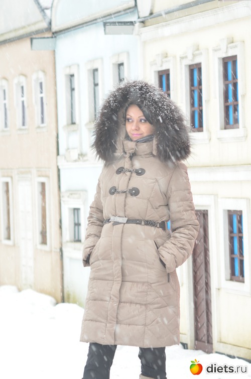 Тань в пуховике стоишь, даже и не скажешь что ты в положении!