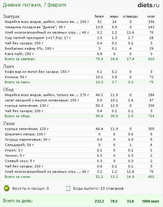 Калорийность продуктов