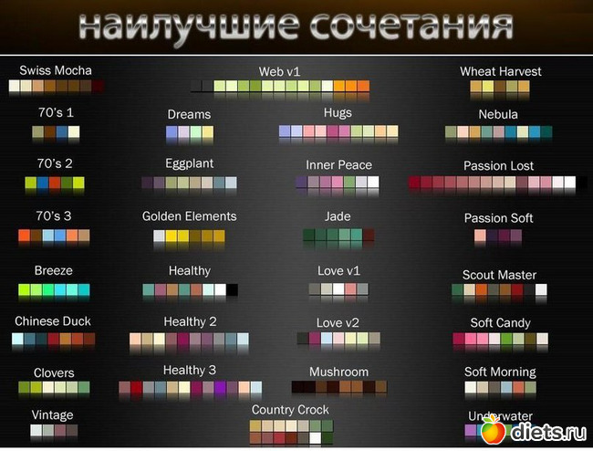6 закон: Сочетаются родственные или контрастные цвета.