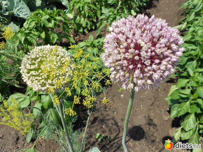 Многолетнее растение формирует плоские широкие листья с чесночным запахом. Цветет со второго года жизни, образуя светло-сиреневые соцветия. Лук холодостоек, устойчив к болезням, растет на одном месте 6-7 лет. Любит плодородные почвы с хорошим увлажнением.