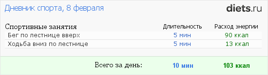 Завтра у моей бабушки юбилей, так что считать калории бесполезно. Бег по лестнице сделаю утром, чтобы наверняка.