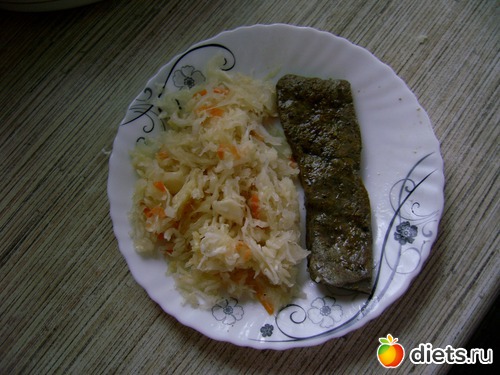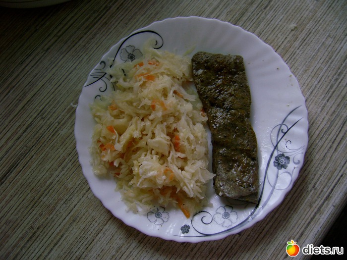 Обед: печень говяжья на пару+капуста квашенная